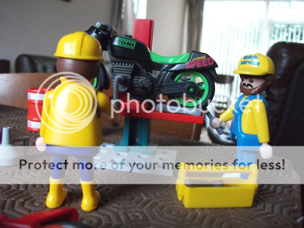 You do have some great things, I love your park scene The one with the motorbike being repaired interested me - I think I have the piece the bike is on, it came in with some spares and although I thought it was from a garage set of some sort I wasn't sure what. I use mine now - when I find it again! Elaine